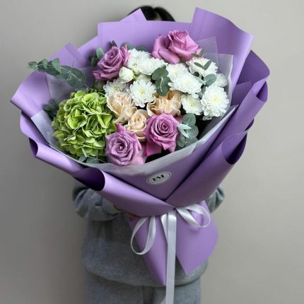 “Эвкалиптическая роскошь” гортензия и пионовидная кустовая роза
