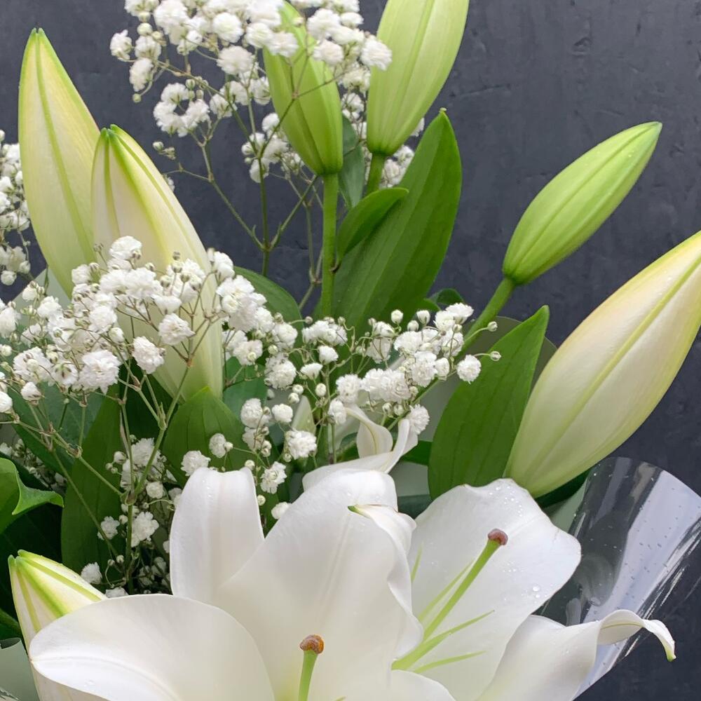 Букет из лилий и гипсофилы