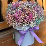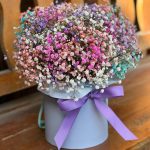 “Сиреневый туман” – композиция из гипсофилы в шляпной коробке