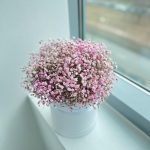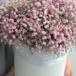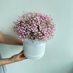 “Сиреневый туман” – композиция из гипсофилы в шляпной коробке