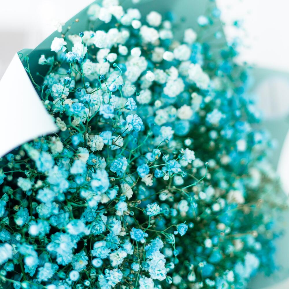 гипсофила цветная – 7 шт.пленка корейская дизайнерская – 2 шт.Лента атласная – 1 шт.Упаковка транспортировочная пленка – 1 шт.инструкция по уходу за цветами – 1 шт.