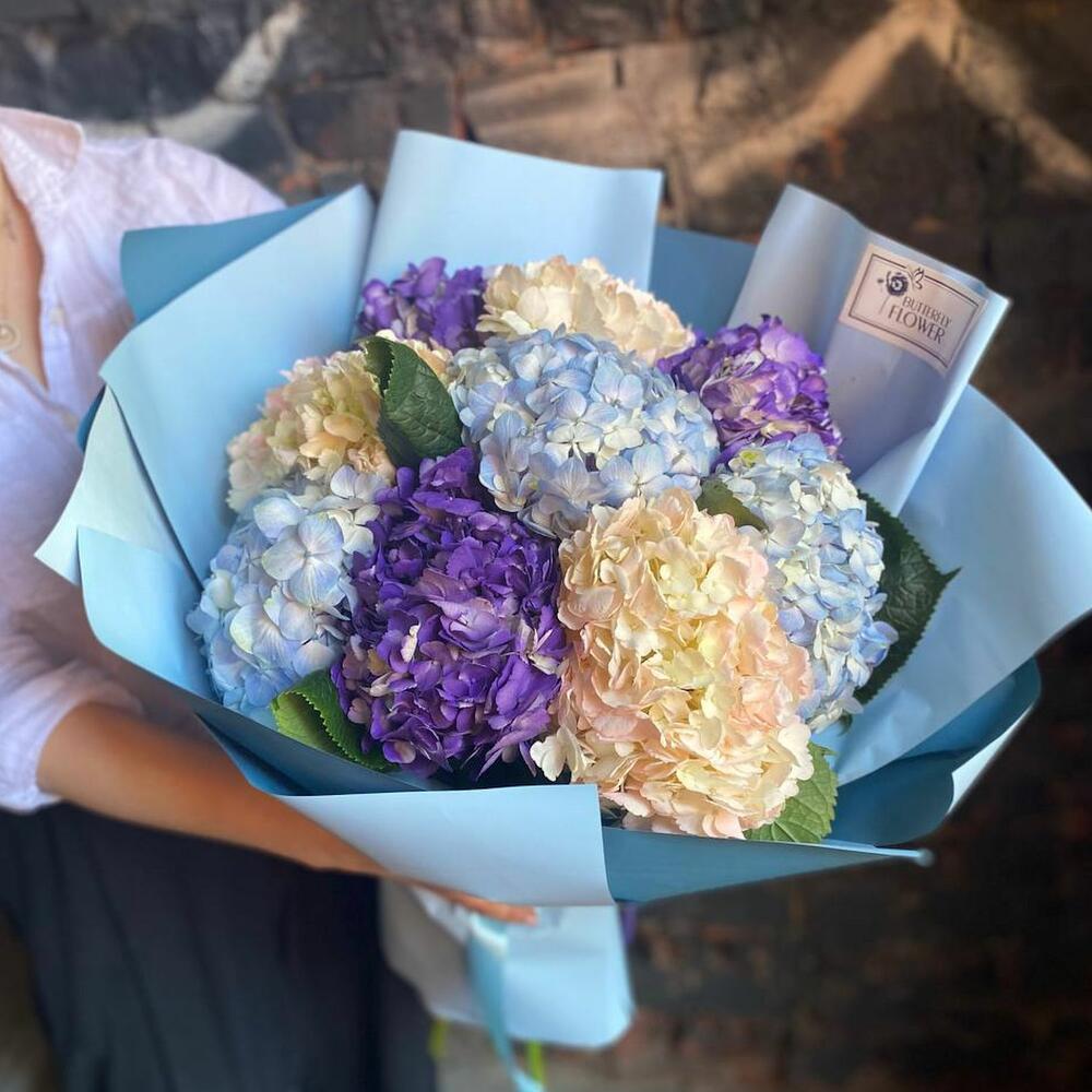 Гортензия – 9 шт.Дизайнерская упаковка – 1 шт.Лента – 1 шт.