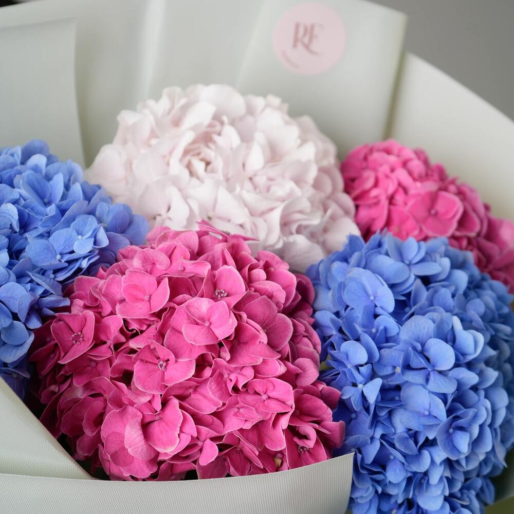 Гвоздики, Гортензии, Лизиантусы, Пионовидные розы, Розы
