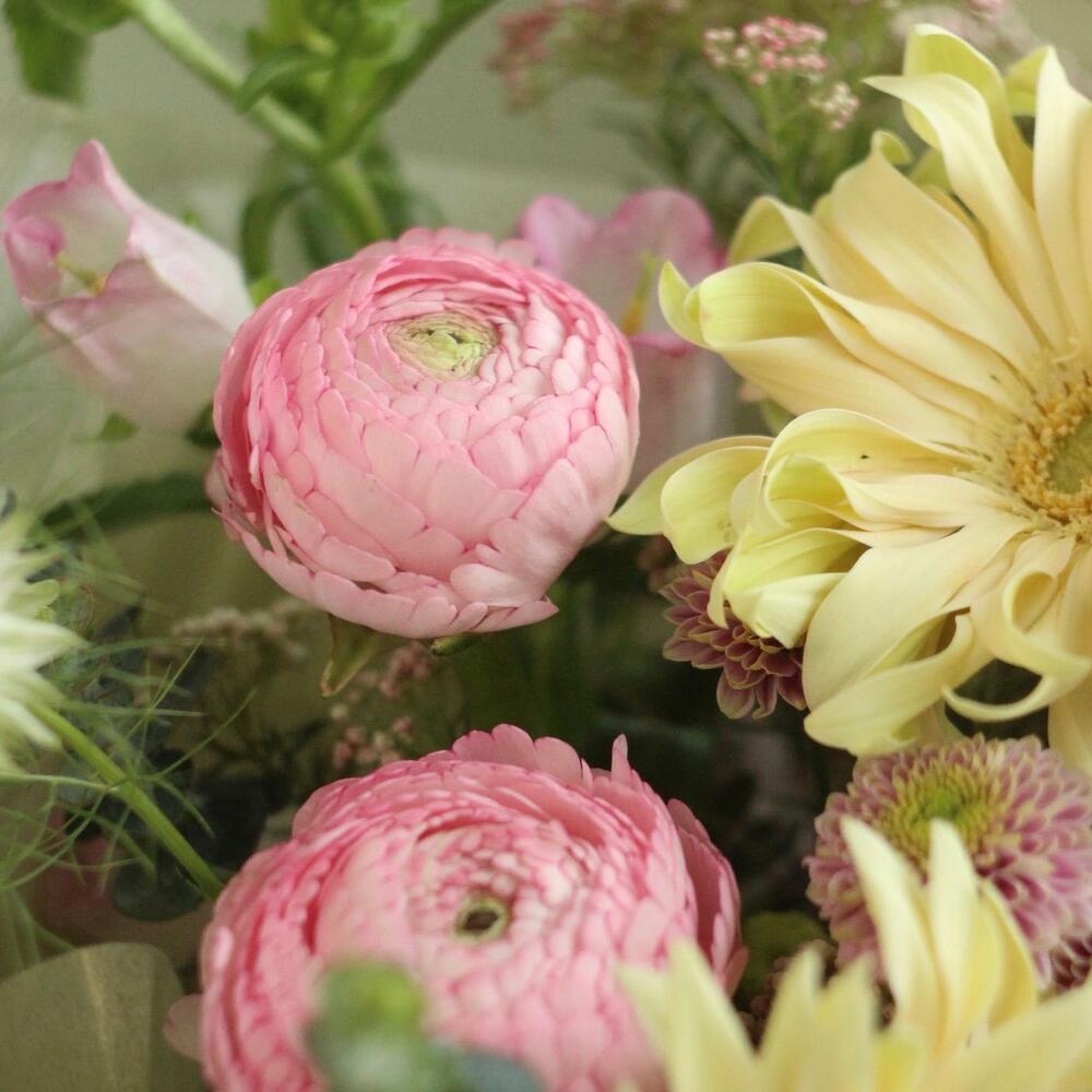 Букет с кудрявыми герберами и ранункулюсами