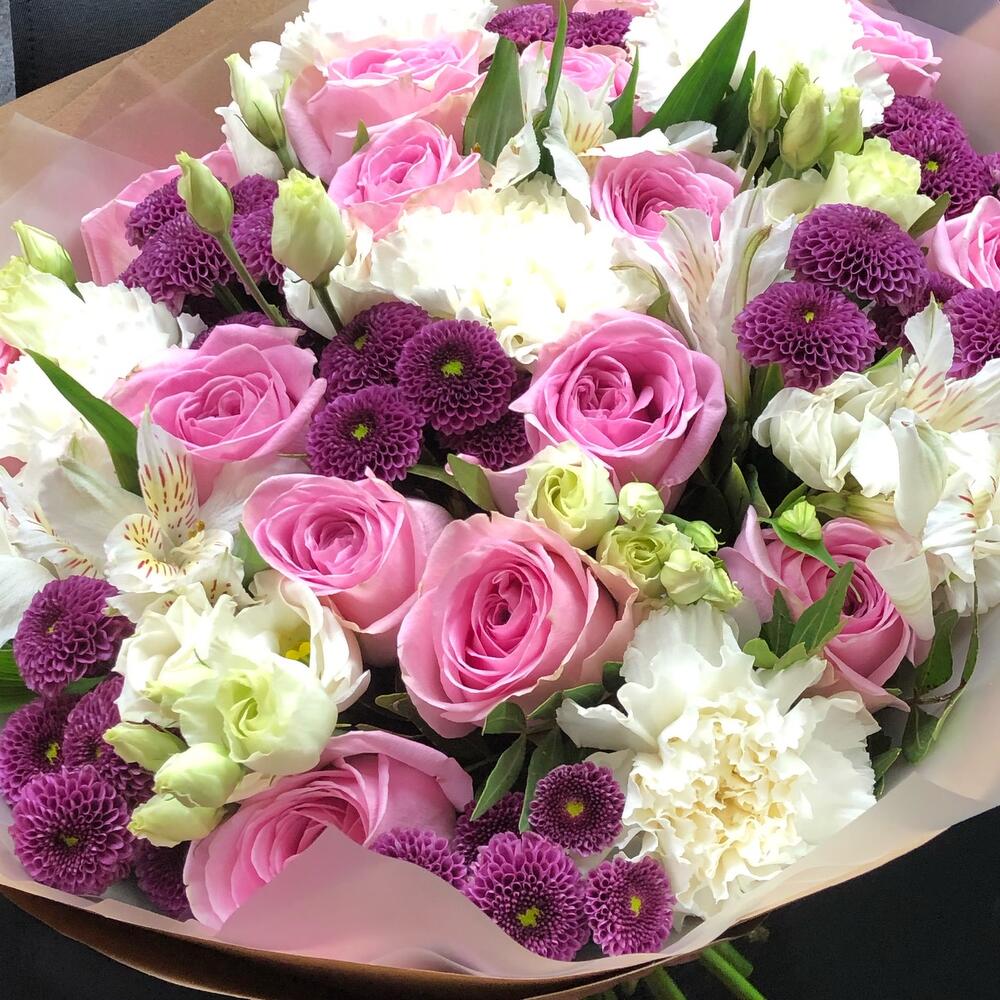 Гвоздики, Кустовые розы, Лизиантусы, Пионовидные розы, Розы