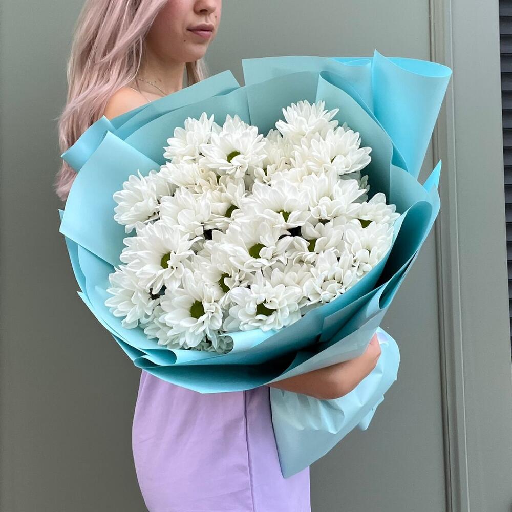 15 кустовых хризантем с зеленью