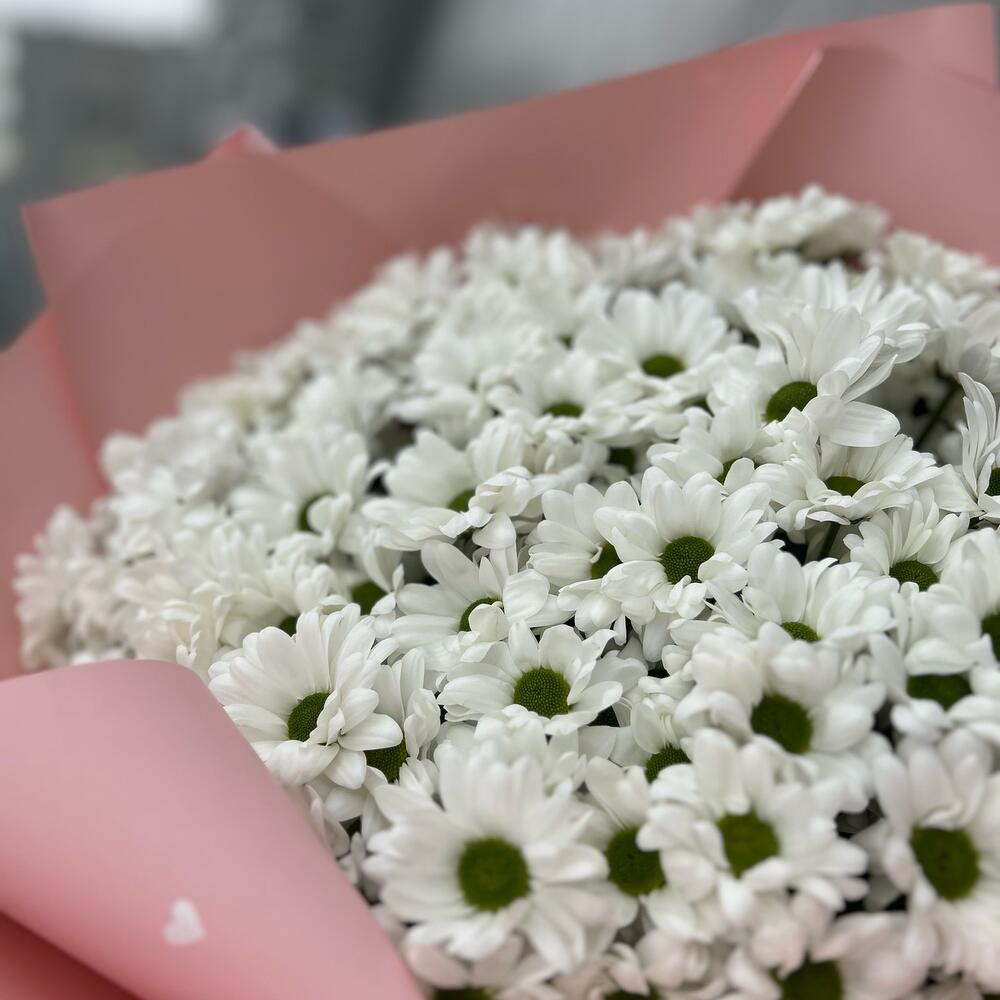 Букет из 11 веток ромашковых хризантем. Количество ромашек в букете может достигать 151 штуки.