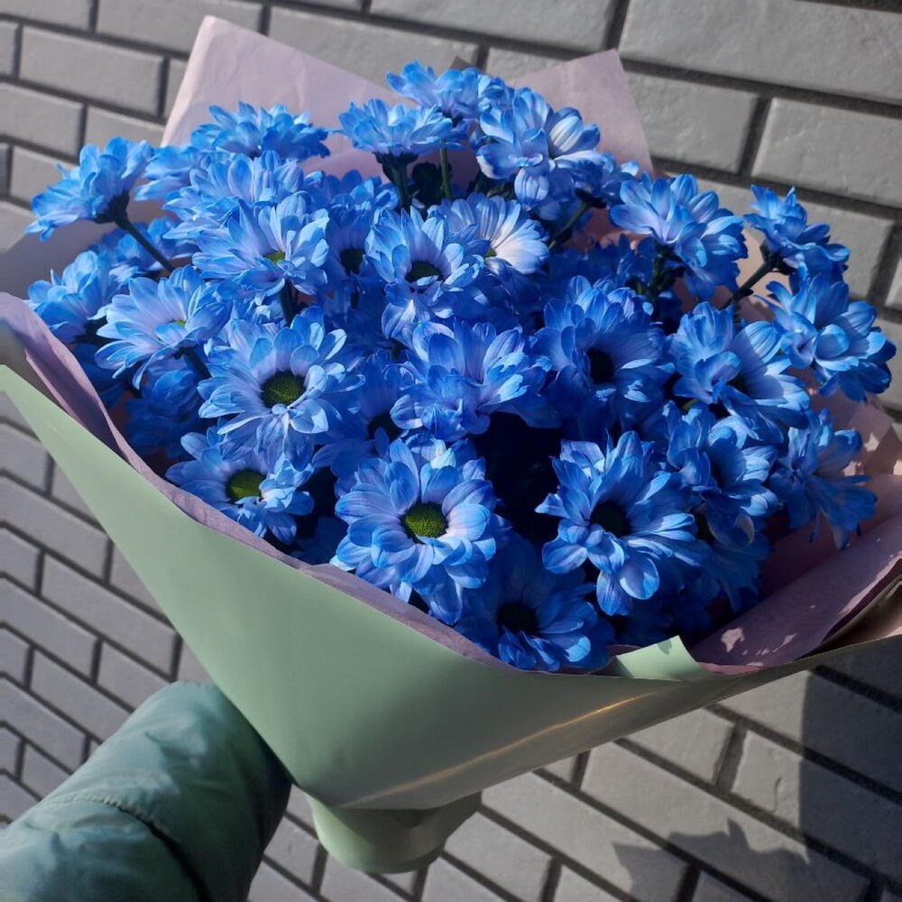 15 кустовых хризантем с зеленью