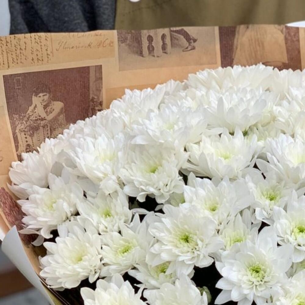 15 белых хризантем