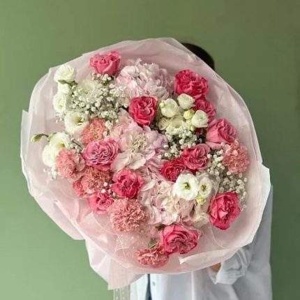 Букет "Bloom" с гипсофилой, гортензией, лизиантусом и розой