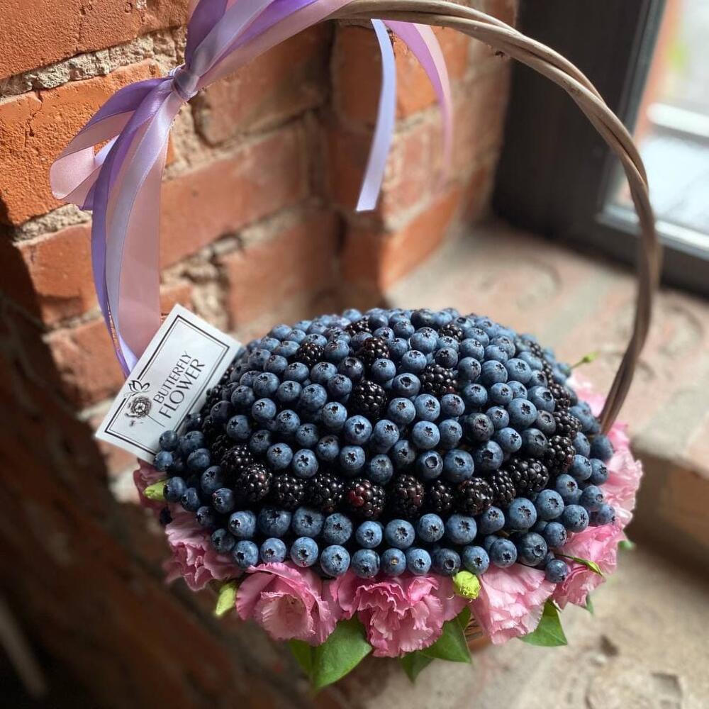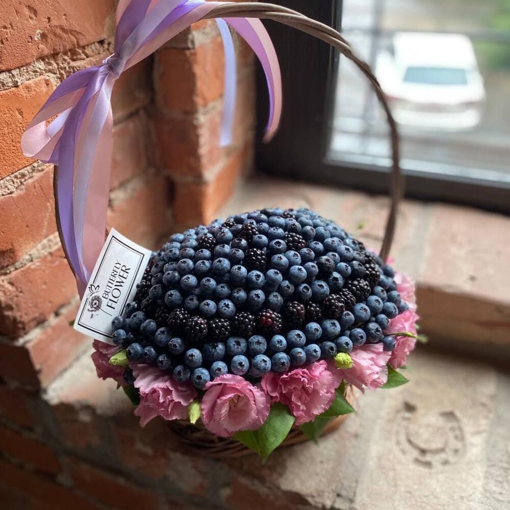 Корзина – 1 шт.Упаковка – 1 шт.Эустома – 5 шт.Оазис – 1 шт.Ежевика – 250 гр.Голубика – 750 гр.
