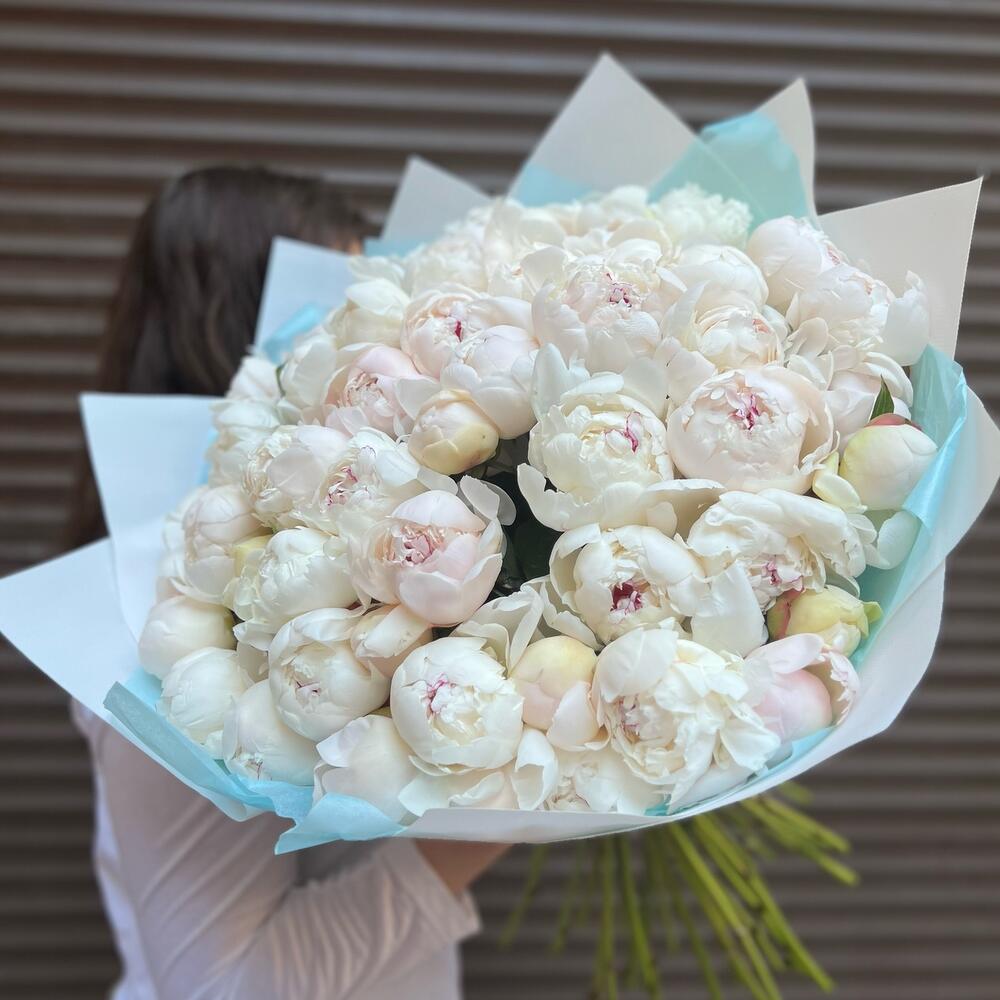 51 пион белый Вип букет (моно 079)