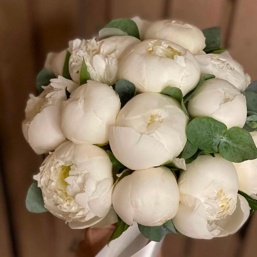 Букет из белых пионов и эвкалипта