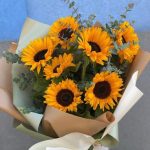 Авторский букет из 7 подсолнухов с эвкалиптом