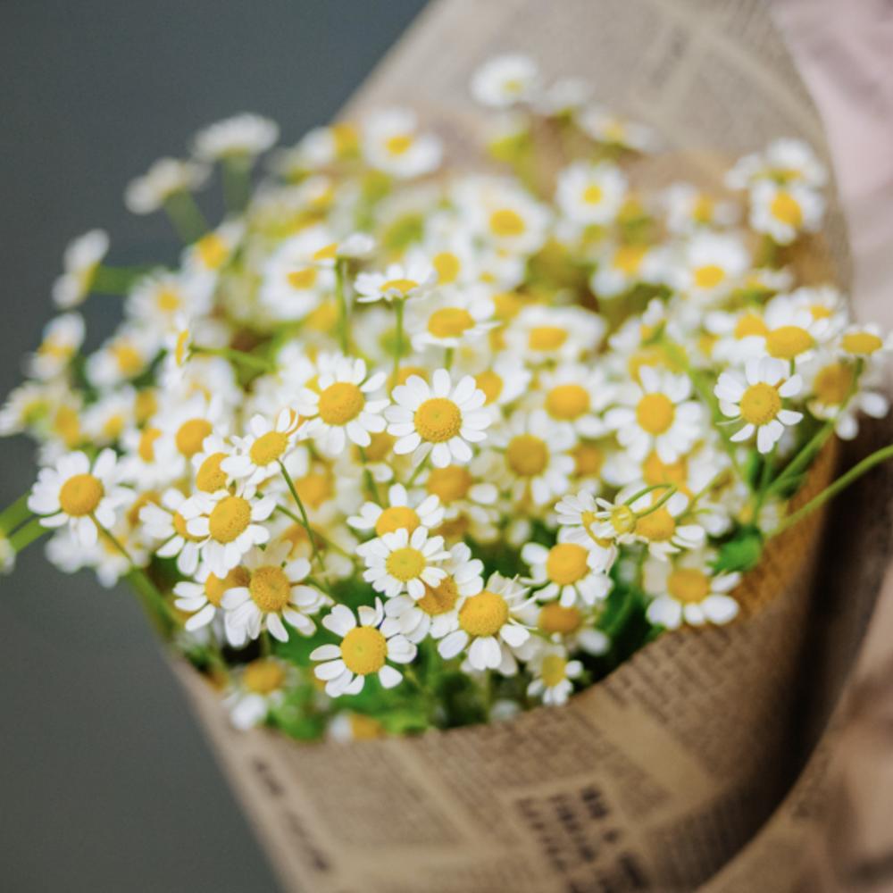 ромашки – 9 шт.дизайнерская упаковка и атласная лента – 1 шт.