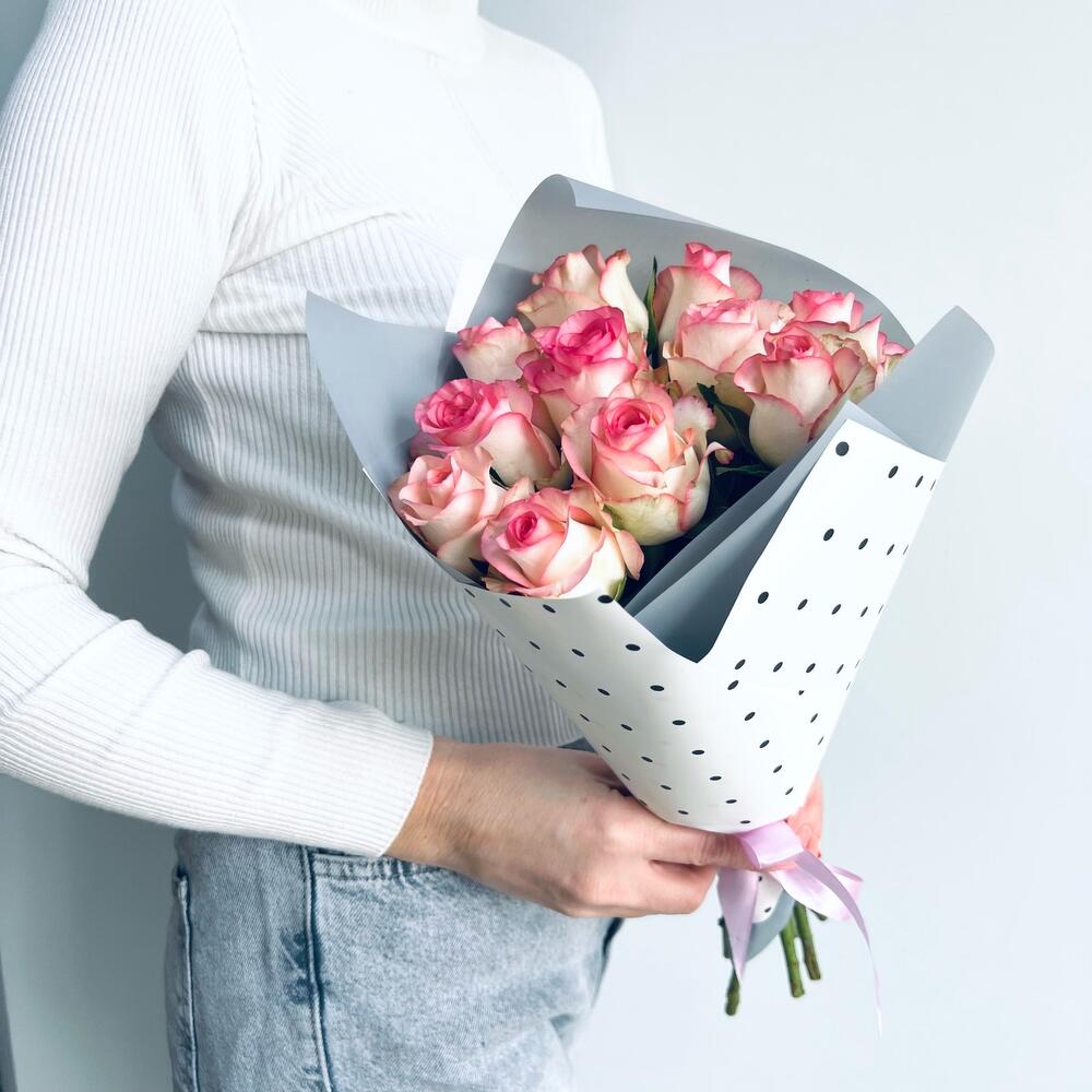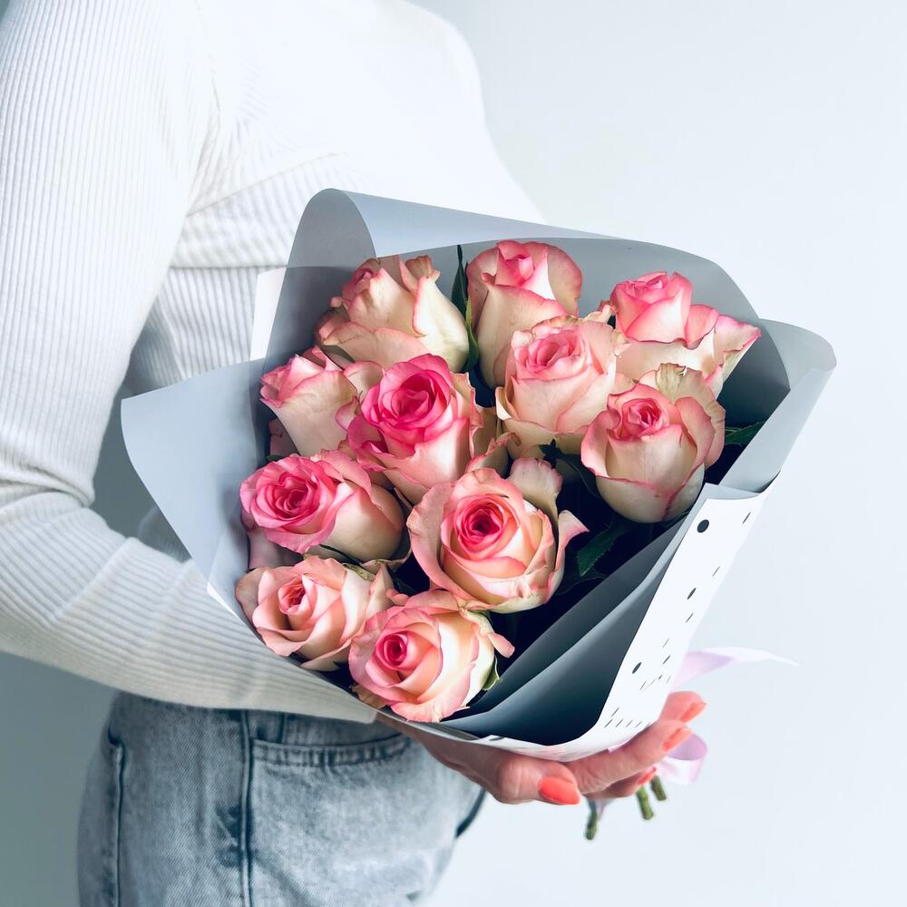 11 роз в стильной упаковке