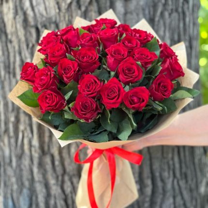 Роза 40 см – 21 шт. Эвкалипт – 1 шт. коробка фирменная – 1 шт.