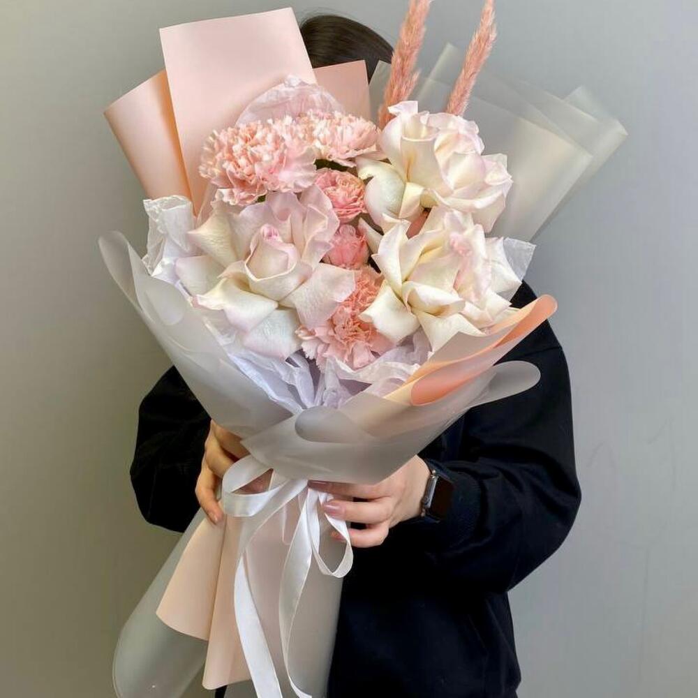 Гвоздики, Кустовые розы, Пионовидные розы, Розы