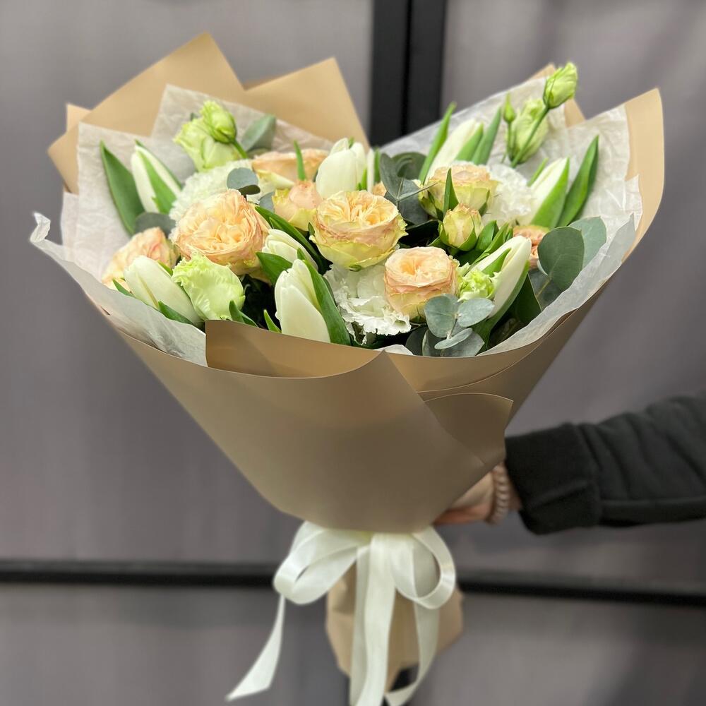 Категорий: Кустовые розы, Лизиантусы, Пионовидные розы, Розы, Тюльпаны