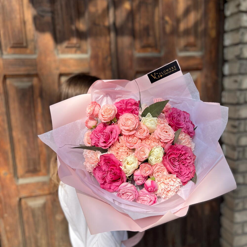 Гвоздики, Кустовые розы, Лизиантусы, Пионовидные розы, Розы