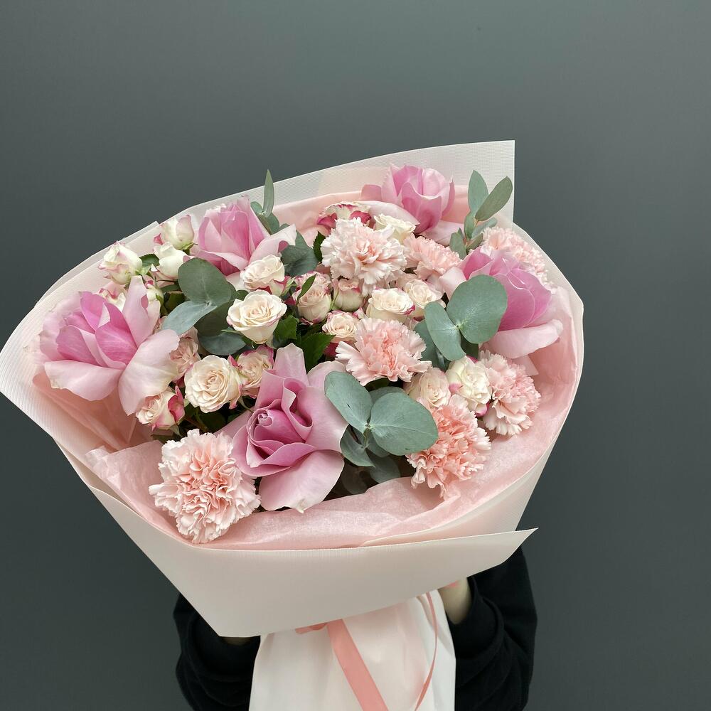 Гвоздики, Кустовые розы, Лизиантусы, Пионовидные розы, Розы