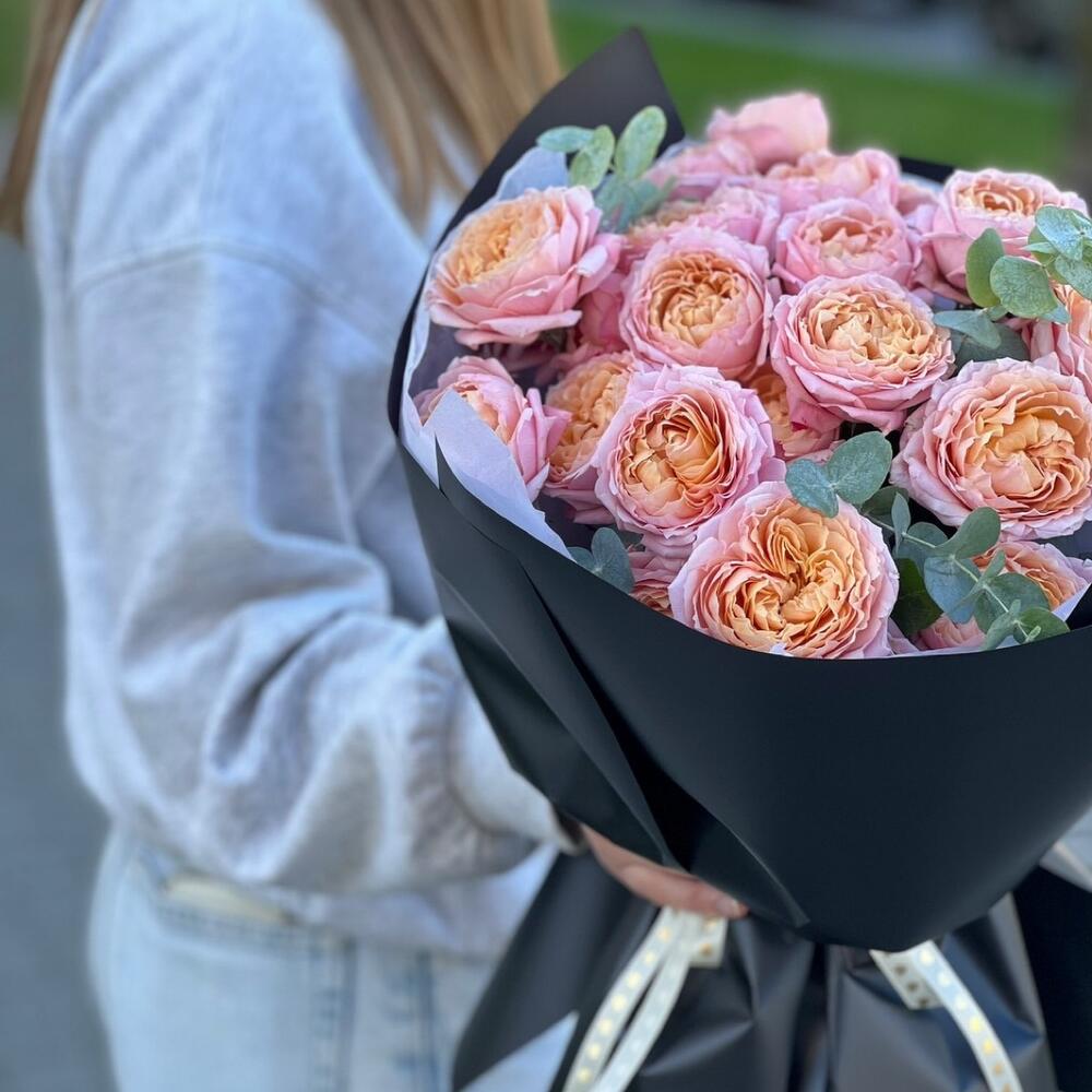 Альстромерии, Кустовые розы, Лизиантусы, Пионовидные розы, Розы, Ромашки