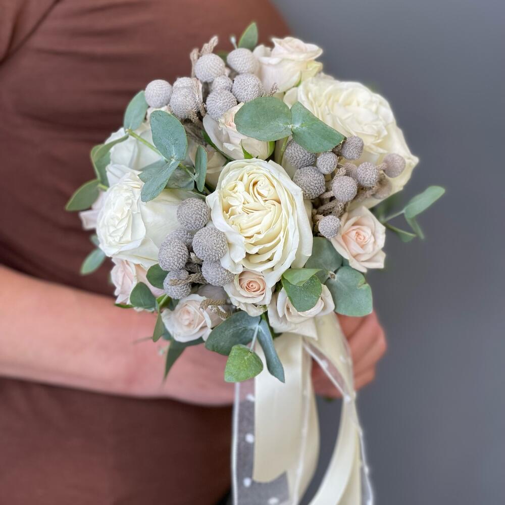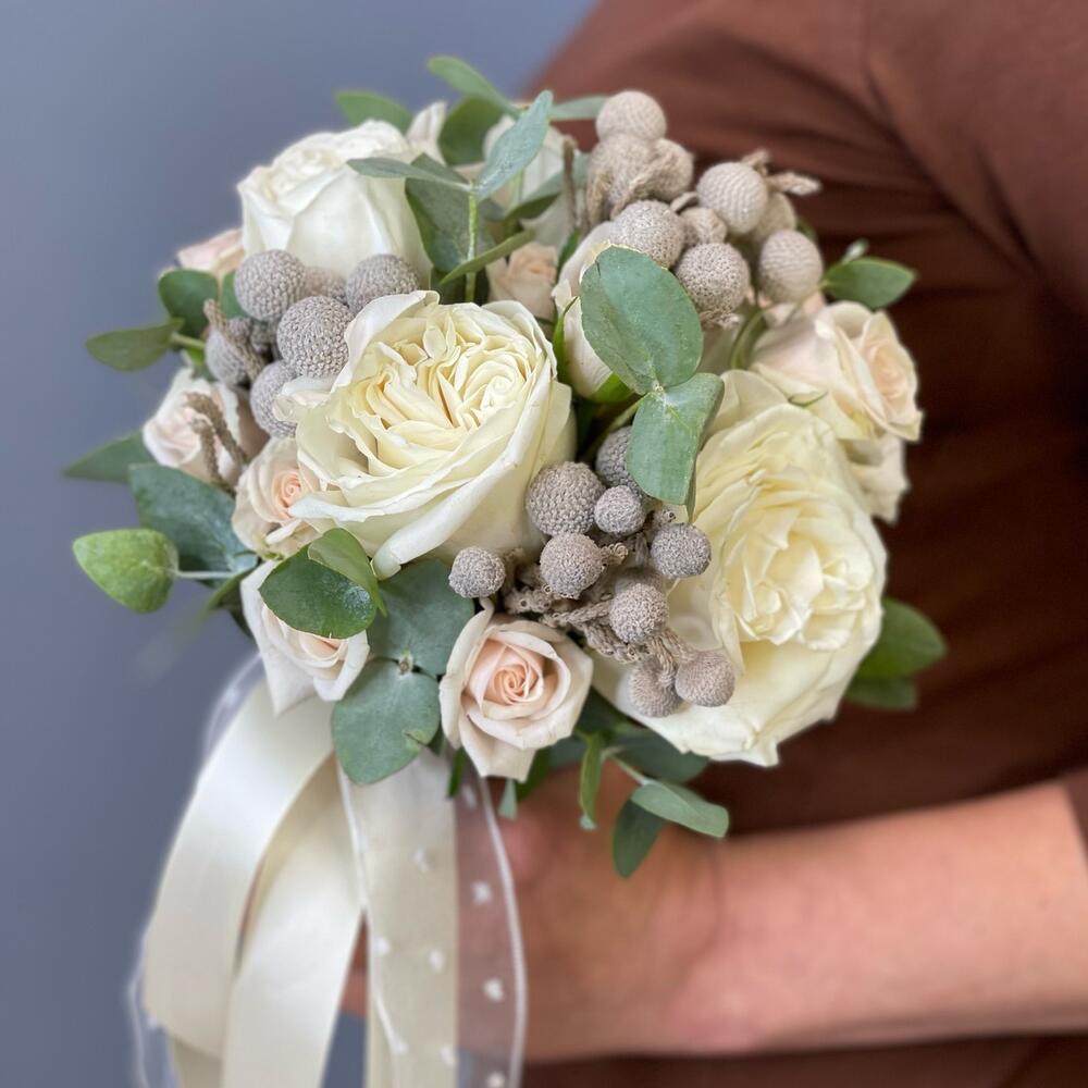 Букет невесты с кустовой розой«Кремовая пудра»