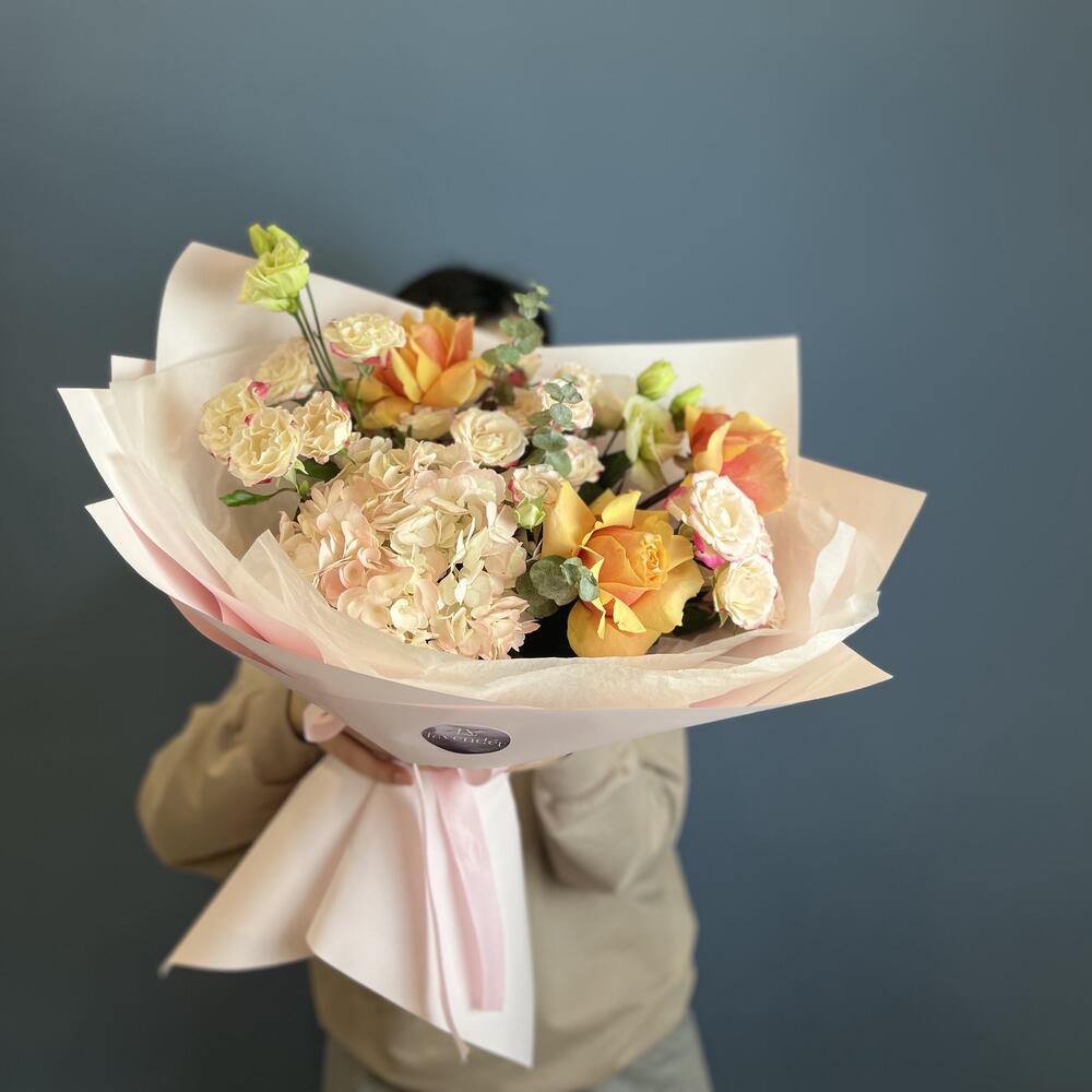 Гвоздики, Кустовые розы, Лизиантусы, Пионовидные розы, Розы