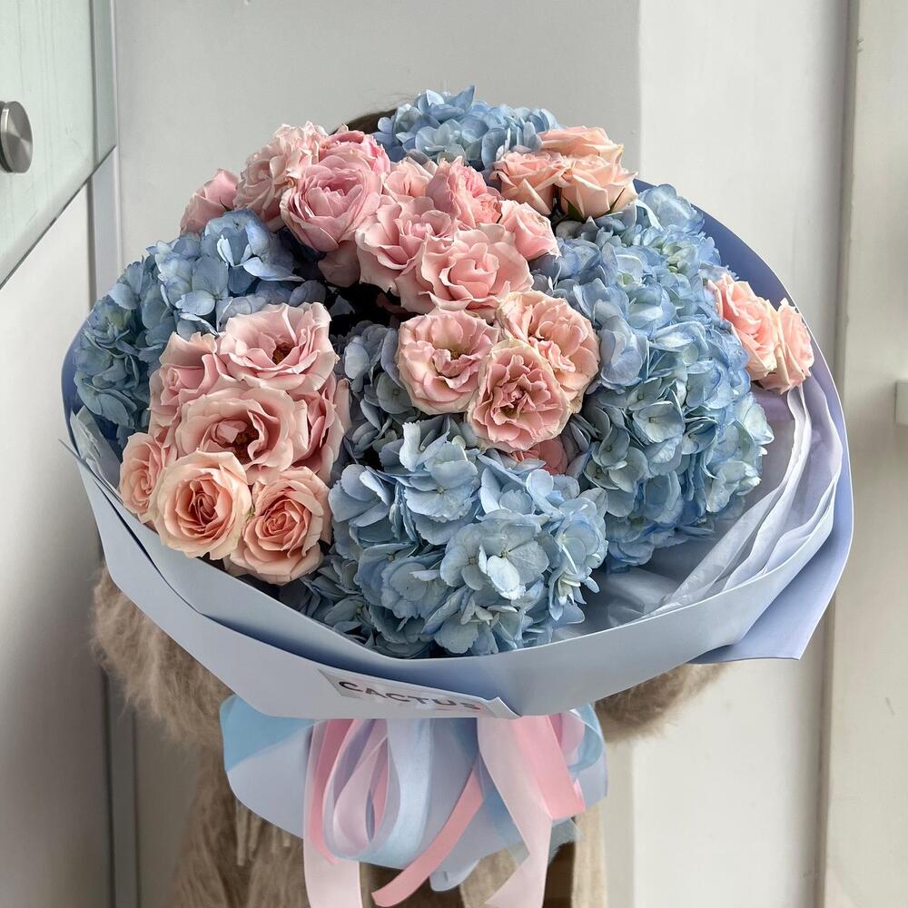 Альстромерии, Кустовые розы, Лизиантусы, Пионовидные розы, Розы, Ромашки