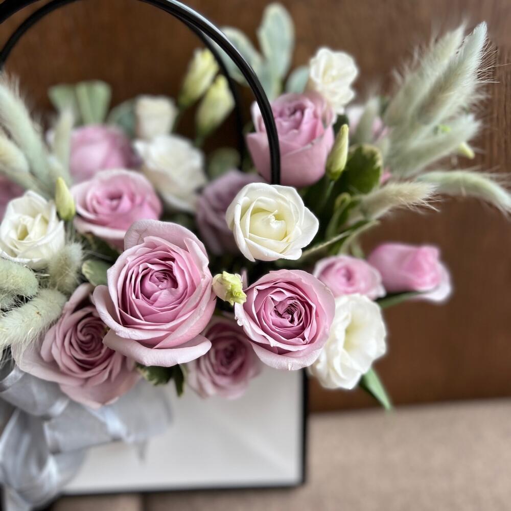 Альстромерии, Гвоздики, Кустовые розы, Лизиантусы, Розы, Хризантемы