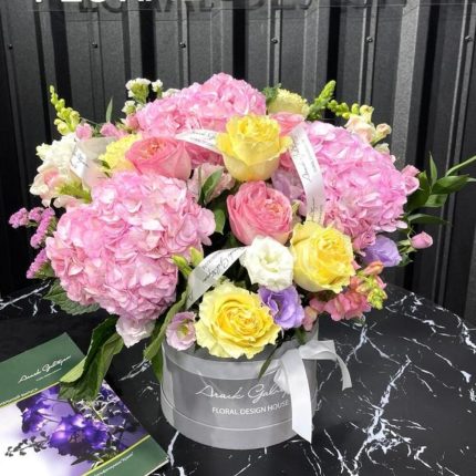 “Эвкалиптическая роскошь” гортензия и пионовидная кустовая роза