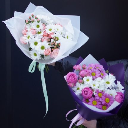 Хризантема кустовая – 5 шт. мистик баббл роза кустовая – 3 шт. Упаковка дизайнерская – 2 шт. Открыточка с вашими пожеланиями – 4 шт. инструкция по уходу за цветами – 1 шт.