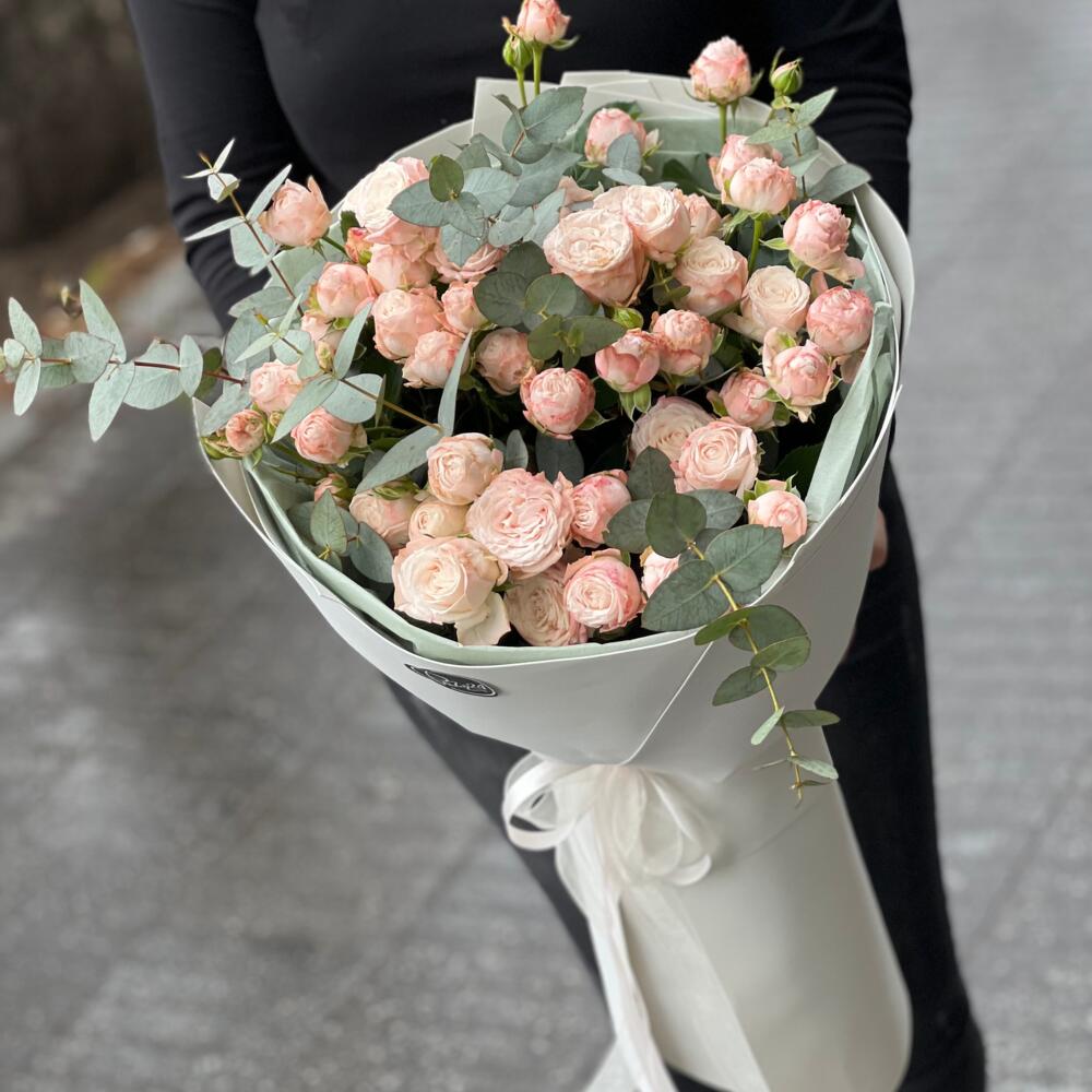 Гвоздики, Кустовые розы, Пионовидные розы, Розы