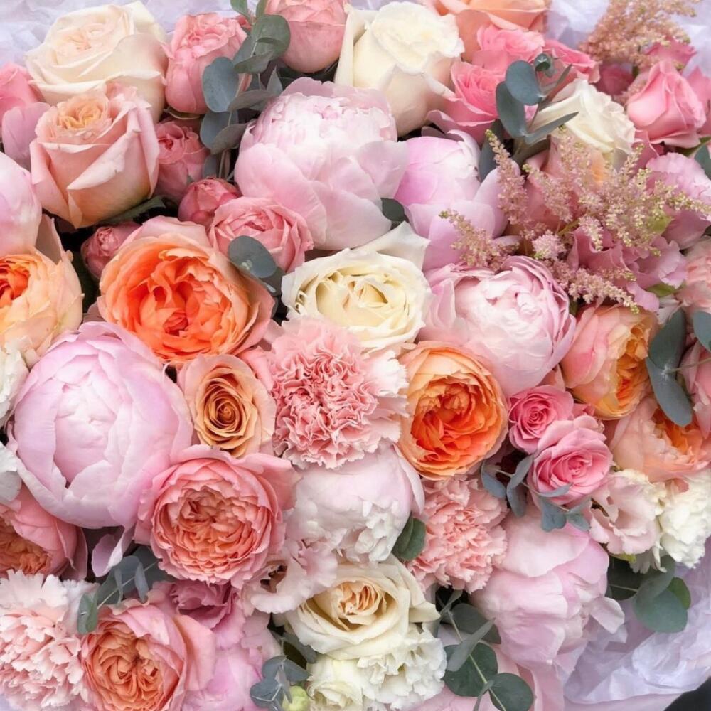 Кустовые розы, Лизиантусы, Пионы, Розы