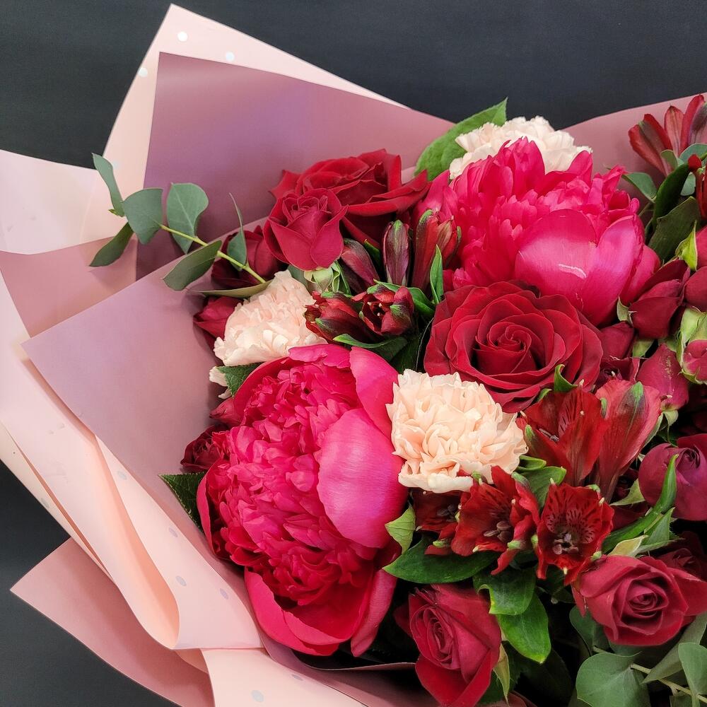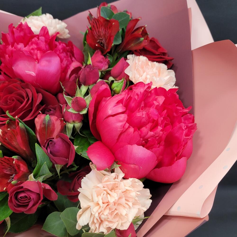Гвоздики, Кустовые розы, Лизиантусы, Пионовидные розы, Розы