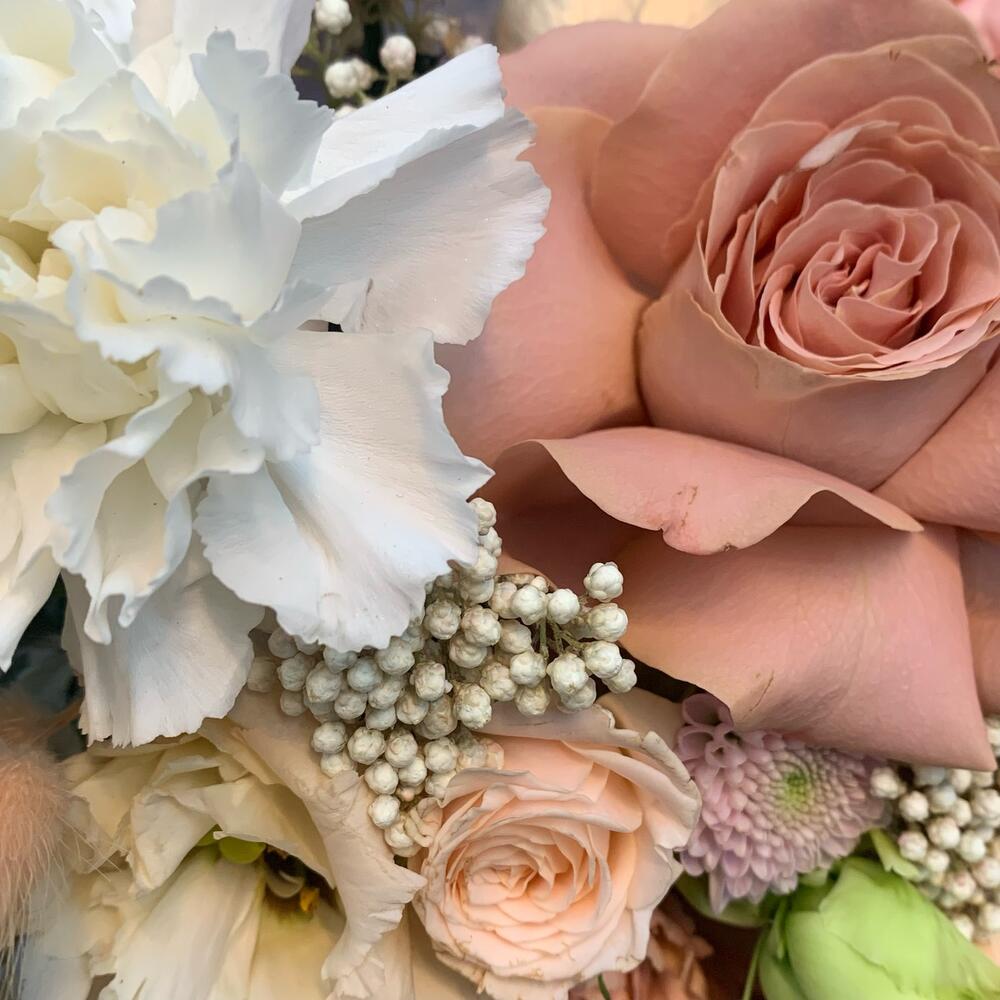 Гвоздики, Пионовидные розы, Розы