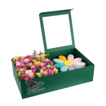 кустовые розы – 7 шт. Макарон – 8 шт.
