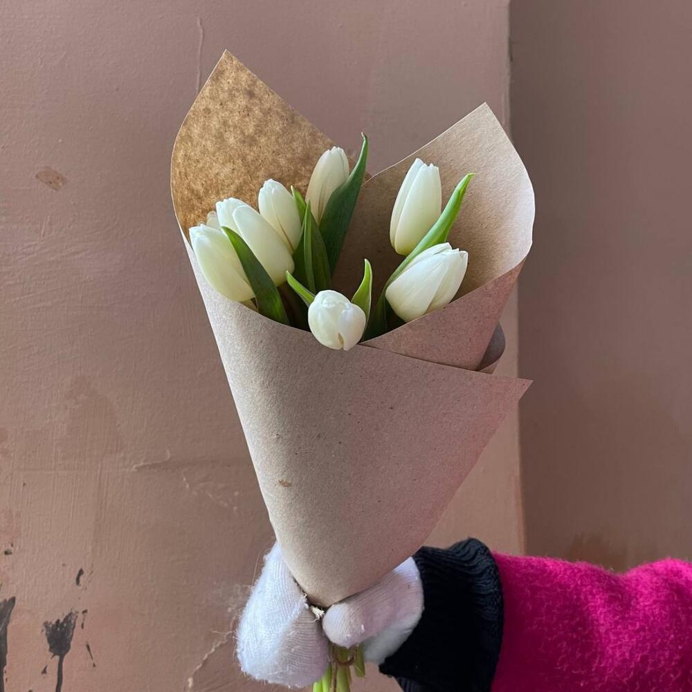 Крафтовая упаковка – 1 шт.Белый тюльпан – 9 шт.