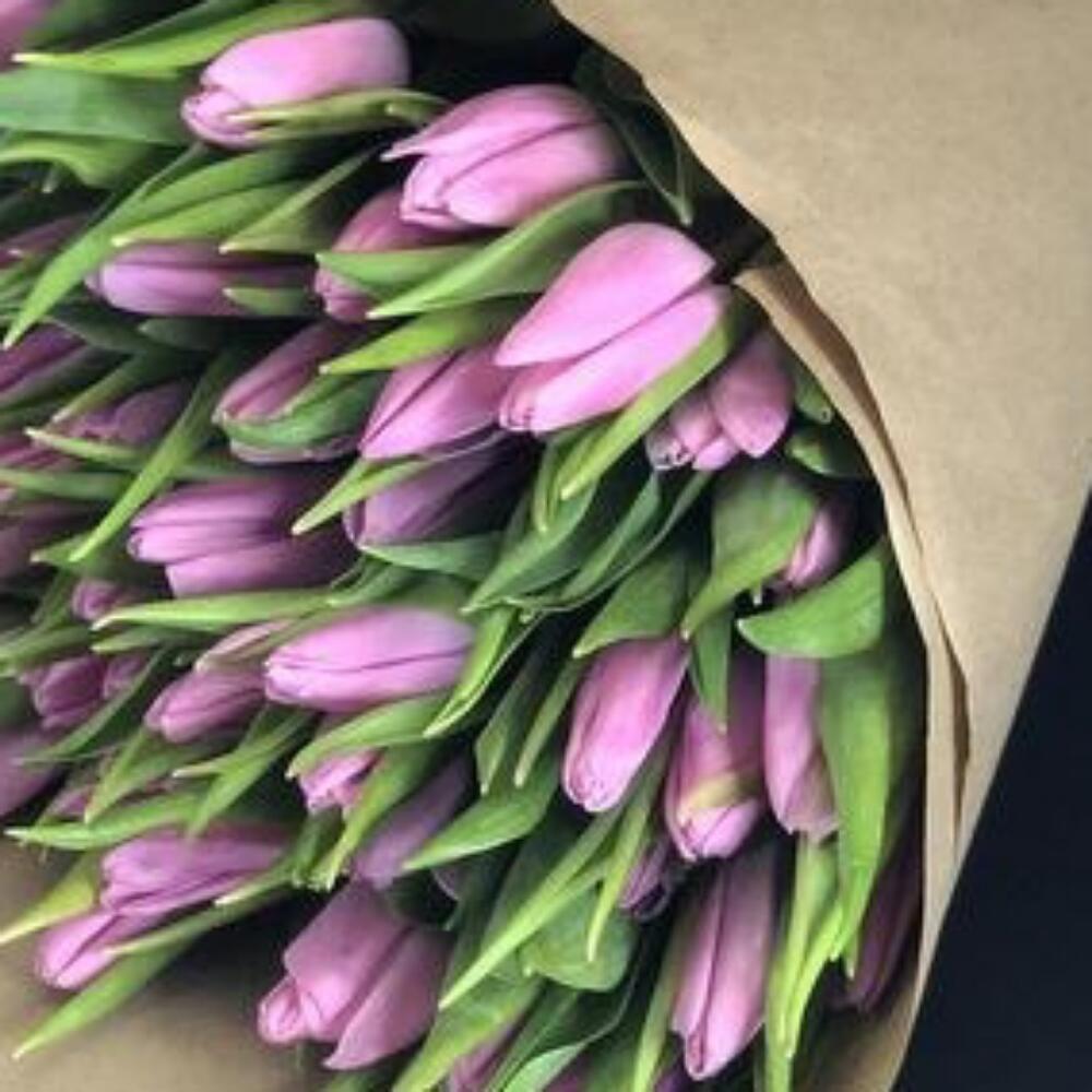 Сиреневые тюльпаны в крафте , очень стильный букет из стойкого сорта тюльпанов , будет долго радовать получателя ) Отличный вариант для подарка на 8 марта . Ваша девушка будет счастлива получить модный букет из тюльпанов . )