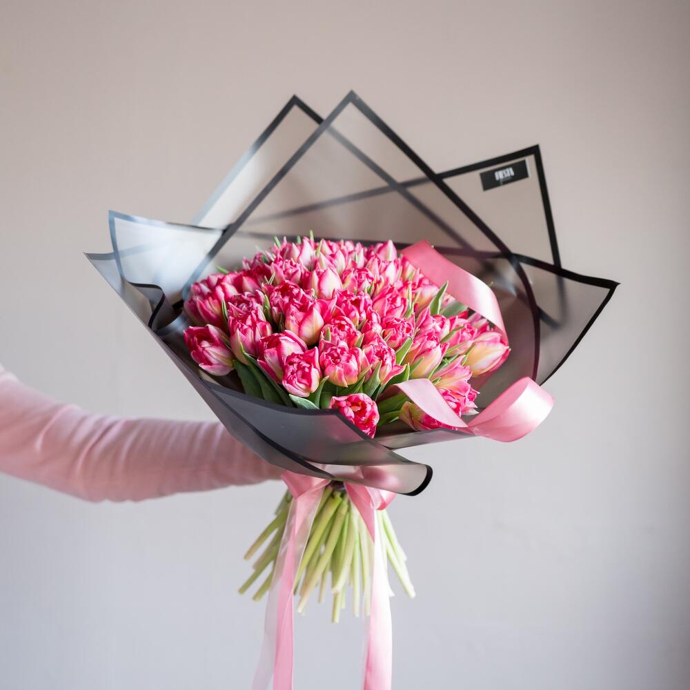 25 пионовидных сиреневых тюльпанов дабл прайс. Букет 200 Kimbirly Flowers