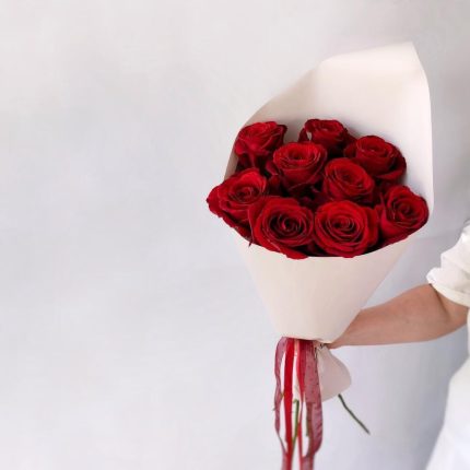9 высоких красных роз