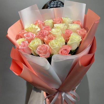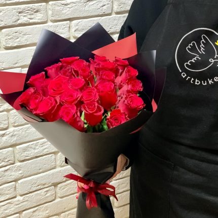 Весенняя композиция в корзине с тюльпанами и ромашками с элементами декора